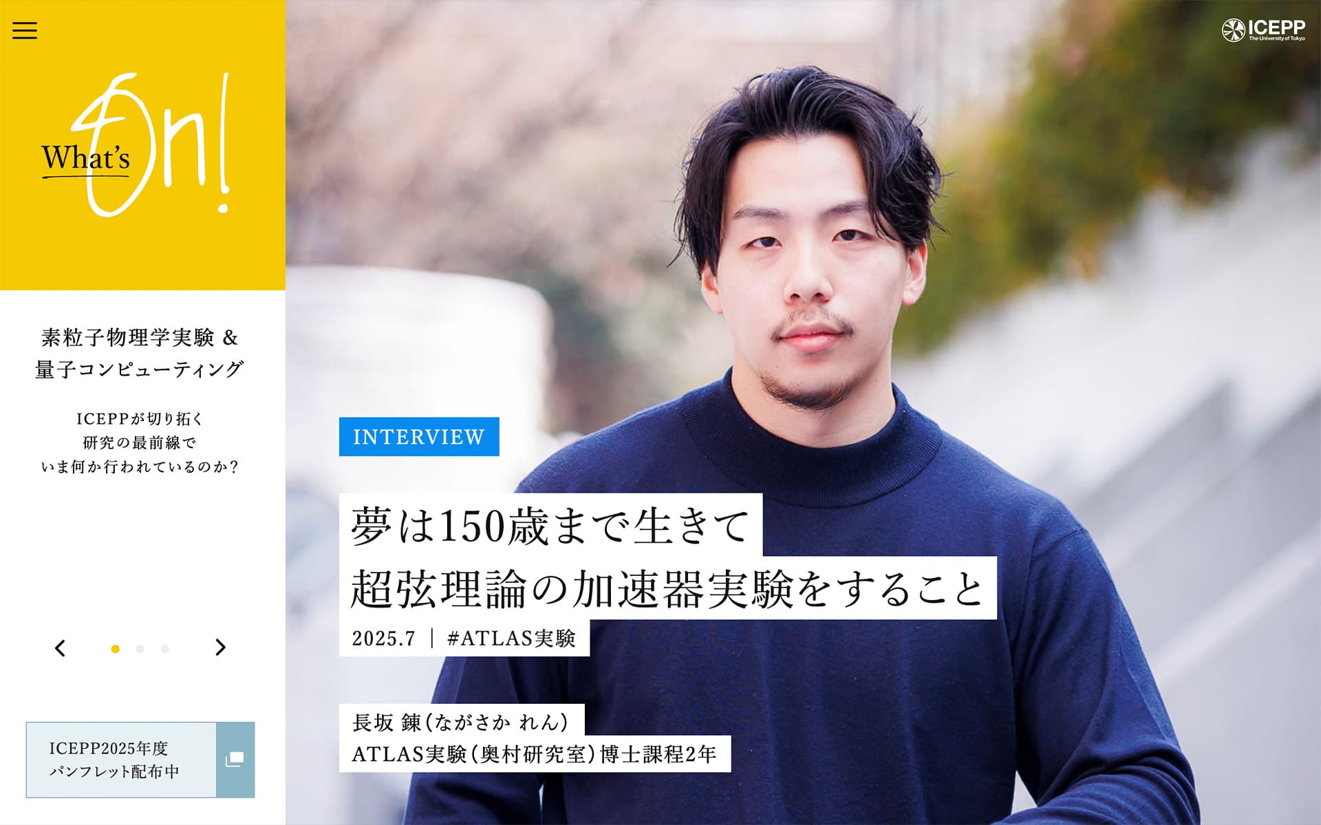 東京大学素粒子物理国際研究センターの研究のいまを伝えるオウンドメディア「What’s On!」をリニューアルしました。